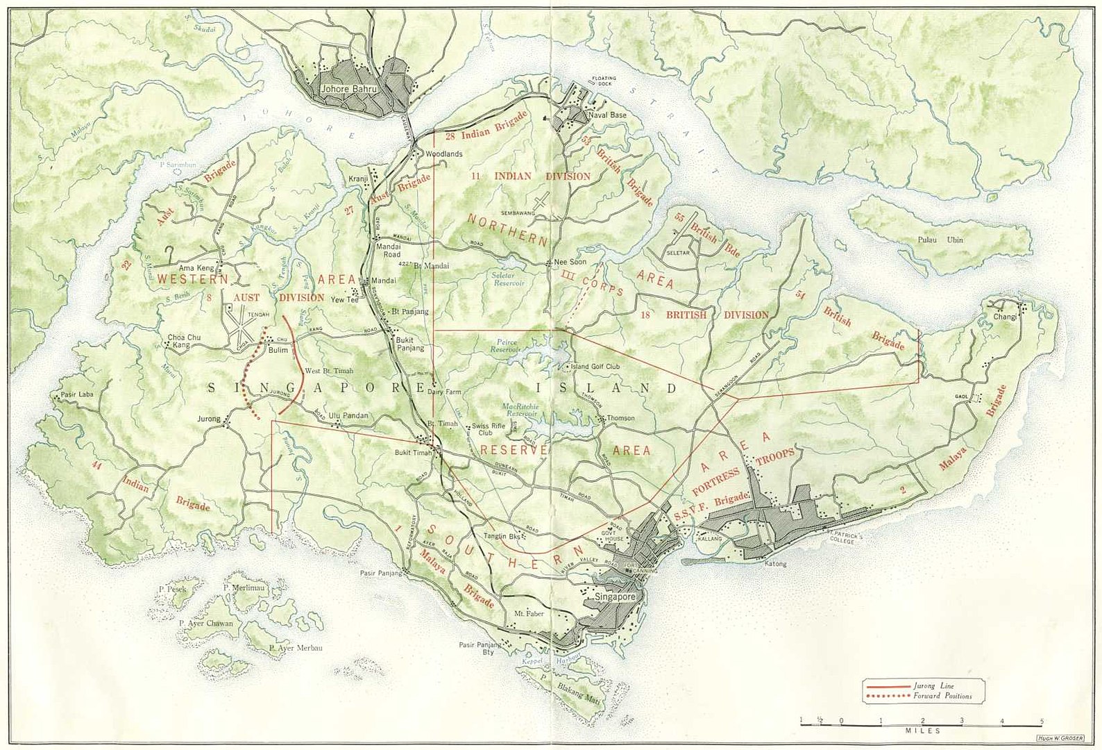 The tasking was short lived; three days later, on 31st January, with the rest of the British Forces, Moore’s men were to move off the mainland and withdrew to Singapore.